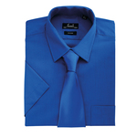 A short sleeve work shirt for men with a stiffened formal cut collar that can accommodate a tie. The main body has a useful left breast pocket.